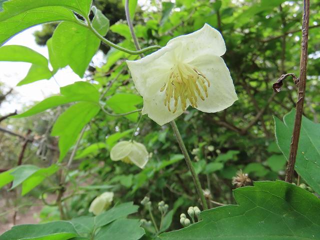 20260419a15_Clematis_williamsii ← 前へ 次へ → シロバナハンショウヅル Clematis williamsii ウラシマソウ Arisaema urashima ニッケイハミャクイボフシ